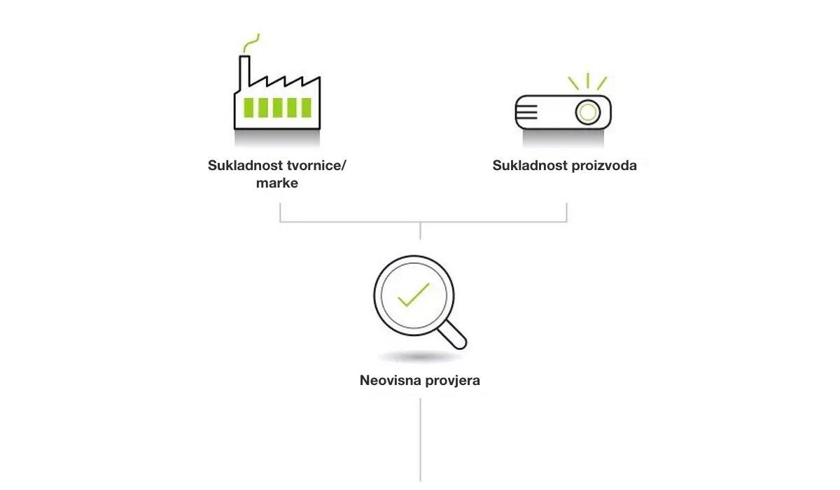 Neovisna provjera sukladnosti proizvoda, tvornice i vlasnika marke uključena je prije i poslije certificiranja.